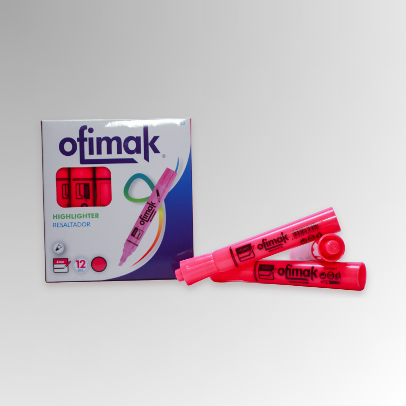 Marcador fluorescente P/B Ofimak de secado rápido, ideal para destacar información con colores intensos.